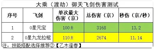 飛劍選擇方面,用0星九龍拉棺和0星元寶進行測試,數(shù)據(jù)如下