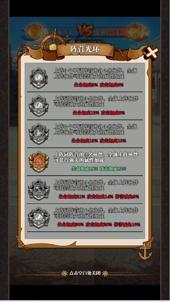 玩家需巧妙構(gòu)建戰(zhàn)斗陣容,依據(jù)不同戰(zhàn)局靈活調(diào)配角色,憑借策略與絕技征服對手,享受燒腦且激爽的戰(zhàn)斗快感。隊伍中可以編入6名角色,角色有4種陣營和4種定位。陣營分為世界政府、新星團、大海賊、海軍和五皇;定位分為輔助、肉盾、輸出、控制。陣營之間沒有克制效果,會根據(jù)上陣中同陣營的英雄數(shù)量獲得傳說之力的加成。戰(zhàn)斗的攻擊順序是根據(jù)在布陣的站位1-6號進行,雙方一號角色會優(yōu)先行動以此類推,可以根據(jù)你隊伍中6名角色的定位設(shè)置合理的排陣出手順序。