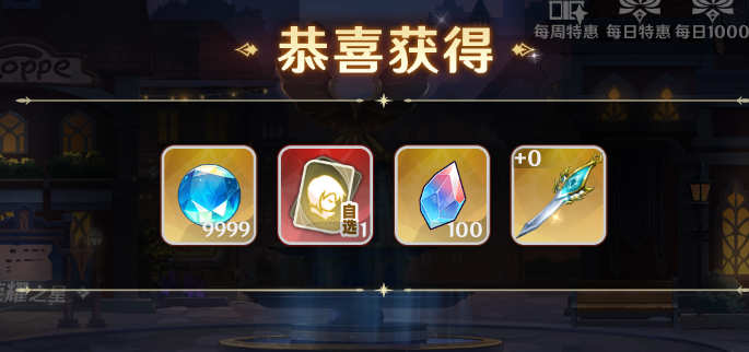 3、上線可領天命英雄自選包2,許愿石頭*100,鉆石*9999,更有金色武器玄波劍 助力開局